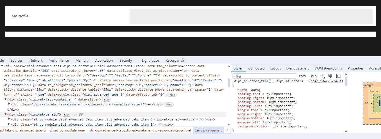 If you’ve added the code to your “styles.css” file inside your child theme and the Divi Pixel Advanced Tabs module still shows some overflow, there’s a few things you can do: